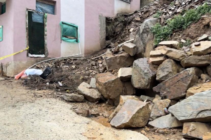 Osmaniye’nin Bahçe ilçesinde aşırı yağış ve fırtına sonrası meydana gelen toprak kayması nedeniyle bir evde hasar oluştu, baz...