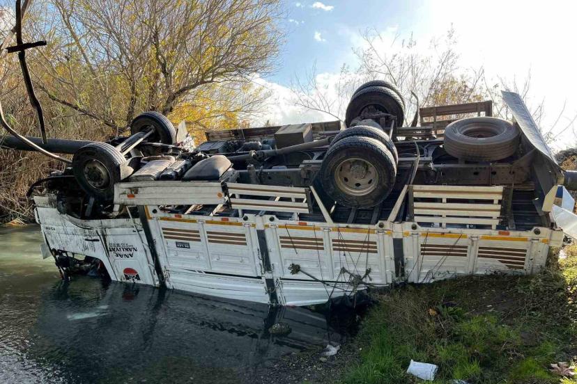 Osmaniye’de kontrolden çıkan turp yüklü kamyon köprü korkuluklarını kırarak dereye devrildi.