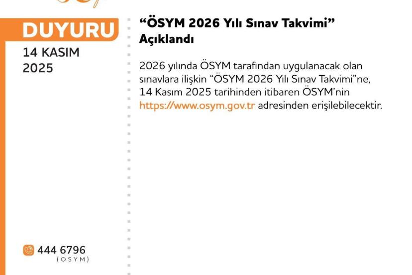 Ölçme, Seçme ve Yerleştirme Merkezi (ÖSYM) 2026 sınav takvimini açıkladı. ÖSYM Başkanı Bayram Ali Ersoy, sosyal medya hesabın...