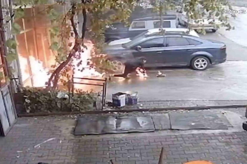 Ekiplerin incelemeleri sürerken, yangın anı saniye saniye güvenlik kamerasına yansıdı. Görüntülerde, iş yerinin içinden bir anda alevler yükselmeye başladığı ve bu sırada içeride bulunan iki kişinin koşarak dışarı çıktığı görülüyor. Son anda dışarı çıkabilen S.S. ve Onur G., koşarak kıyafetlerini ve ellerini saran alevleri söndürmeye çalışıyor.