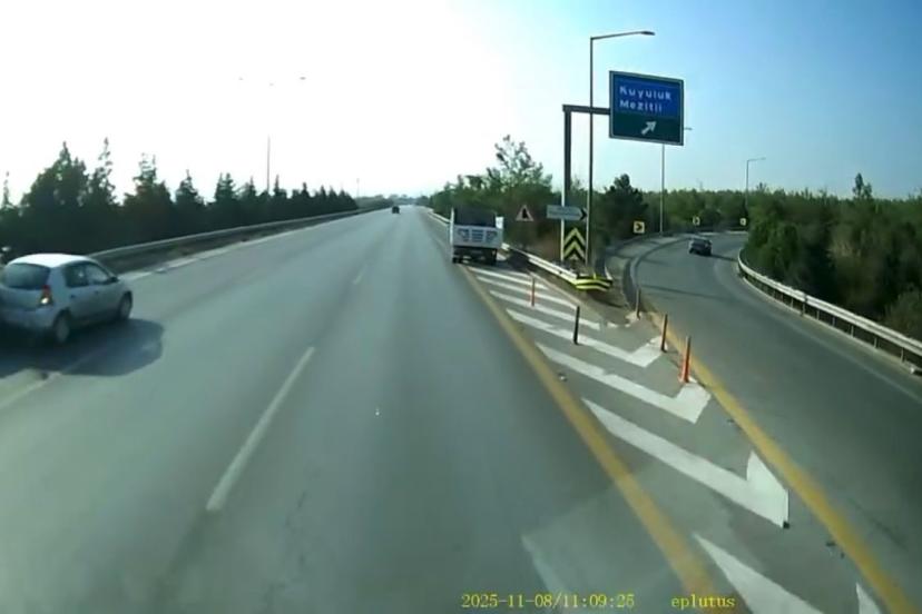 Mersin’de seyir halindeki bir otomobil, otobanda sol şeritte duran başka bir araca çarptıktan sonra bariyerlere savruldu. Kazada yaralanan olmazken, o anlar başka bir aracın kamerasına yansıdı.