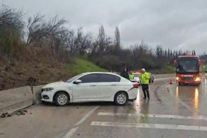 Bursa otobanında meydana gelen zincirleme trafik kazasında 4 otomobil birbirine girdi.