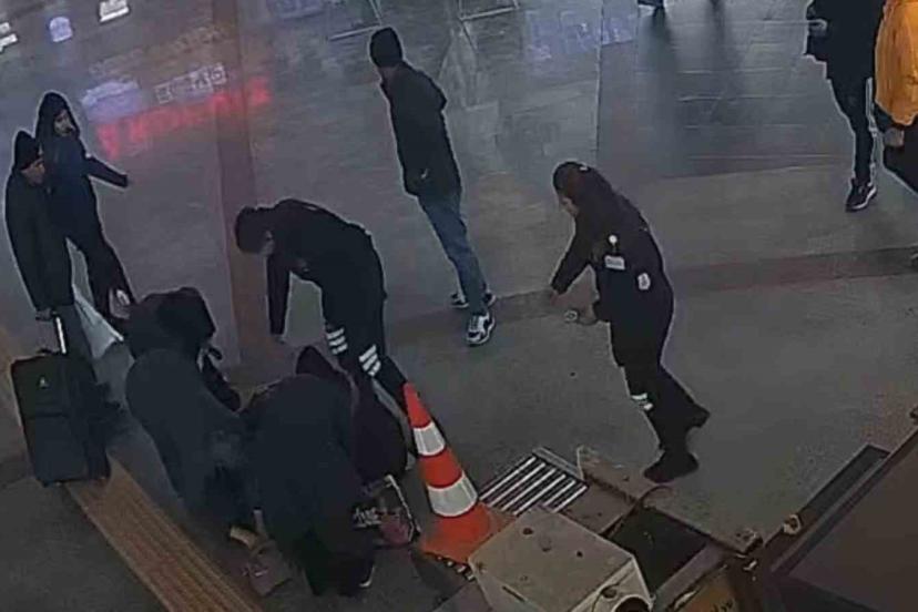 Otogarda bir anda yere yığılan kadına güvenlikten hayat kurtaran müdahale