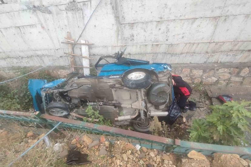 Otomobil drenaj kanalına uçtu: 3 yaralı