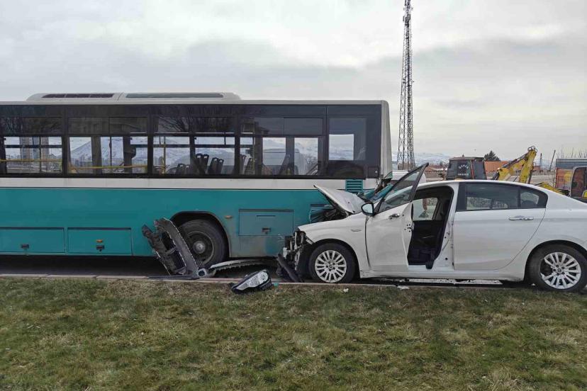 Kayseri’nin Melikgazi ilçesinde otomobilin halk otobüsüne çarpması sonucu meydana gelen kazada araçlarda maddi oluştu.