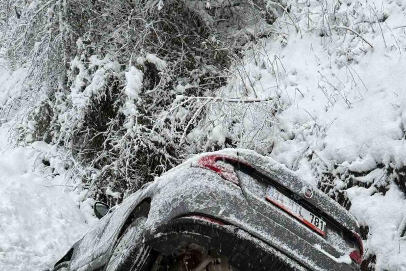 Düzce’de kar sebebiyle kayganlaşan yolda kontrolden çıkan otomobilin kanala uçtuğu kazada 5’i çocuk 8 kişi yaralandı.