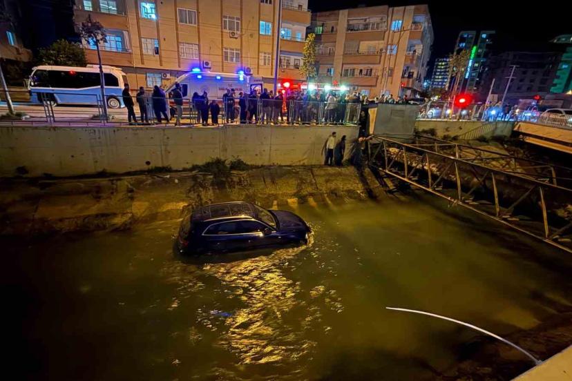 Mersin’in Tarsus ilçesinde meydana gelen trafik kazasında otomobil sulama kanalına düştü.