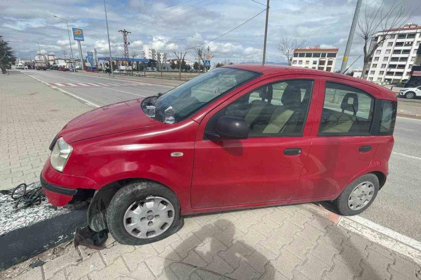 Otomobil refüje çıktı, sürücü kazayı yara almadan atlattı