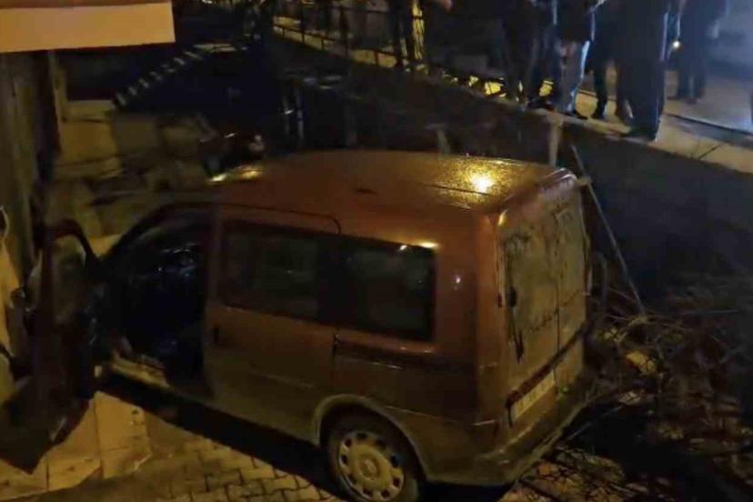 Otomobille çarpışan hafif ticari araç apartman boşluğuna savruldu: 2 yaralı
