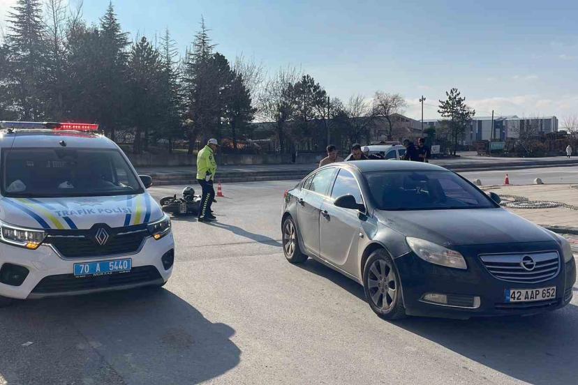 Karaman’da otomobille çarpışan motosikletin sürücüsü yaralandı.