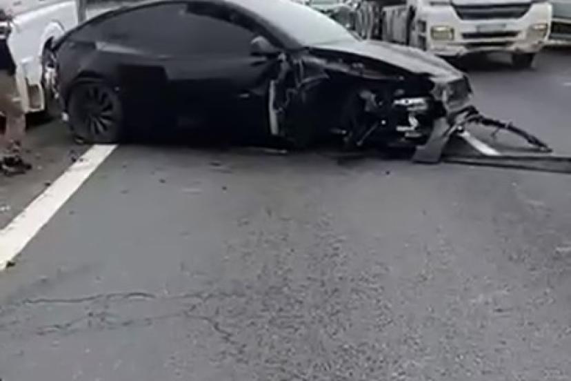 TEM Otoyolu Esenyurt mevkinde Tesla marka araç, otopilot modunda iken ters istikamete daldı.