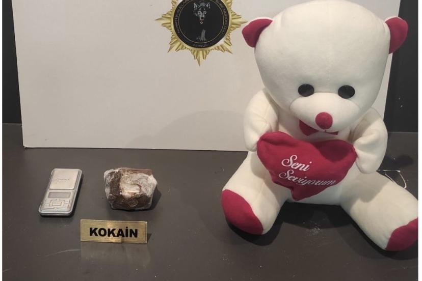 İl Emniyet Müdürlüğü Narkotik Suçlarla Mücadele Şube Müdürlüğü ekiplerince yürütülen çalışma kapsamında, B.S. (23) isimli şahsın ikametinde arama yapıldı. Yapılan aramada oyuncak bir ayının içerisine zulalanmış 150 gram kokain ile 1 hassas terazi bulundu. Olayla ilgili B.S. gözaltına alınarak hakkında adli işlem başlatıldı.