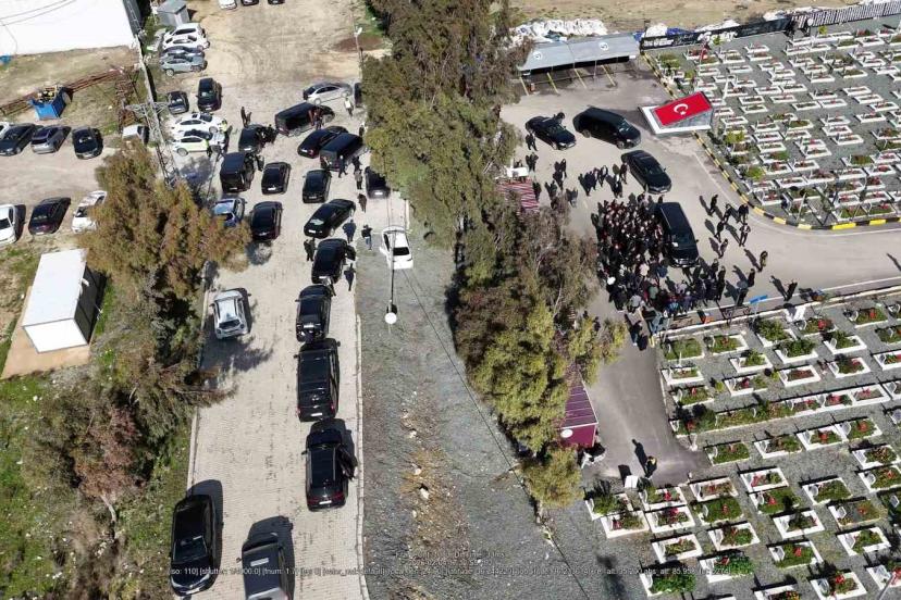 Hatay’da deprem mezarlığını ziyaret eden CHP Genel Başkanı Özgür Özel’in 30 araçlık konvoyu havadan görüntülendi.