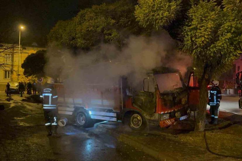 Kayseri’nin Melikgazi ilçesinde aynı kişiye ait park halindeki kamyon ve ticari araç alev aldı.