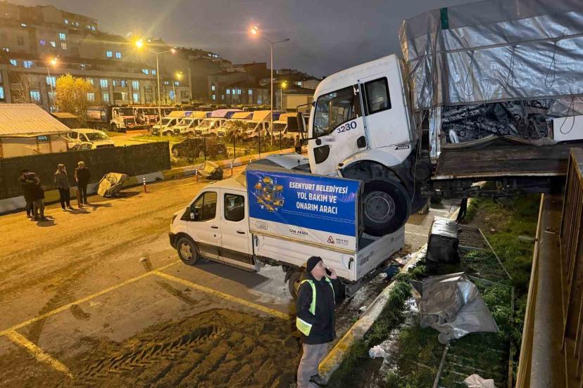 Esenyurt’ta park halindeki bir kamyon kendine kendine hareket ederek, park halinde bulunan başka bir kamyonetin üzerine düştü.