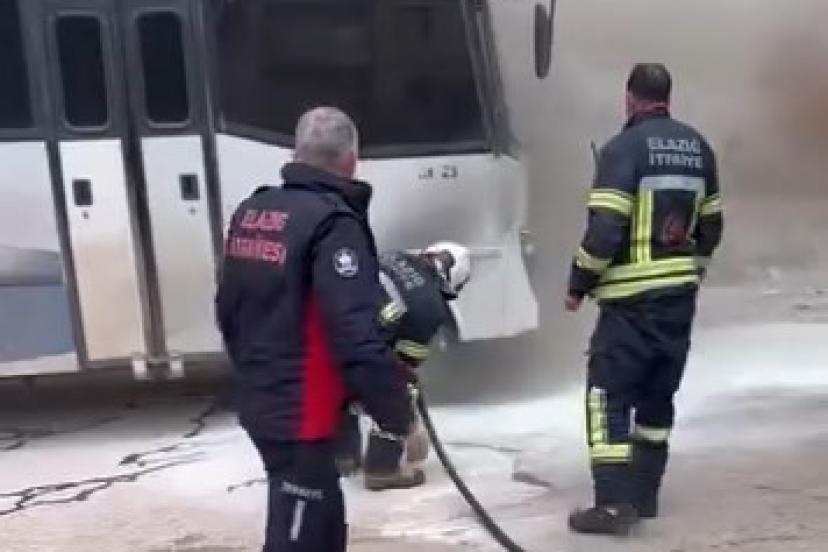 Elazığ’da park halindeki midibüste çıkan yangını itfaiye ekipleri söndürdü.