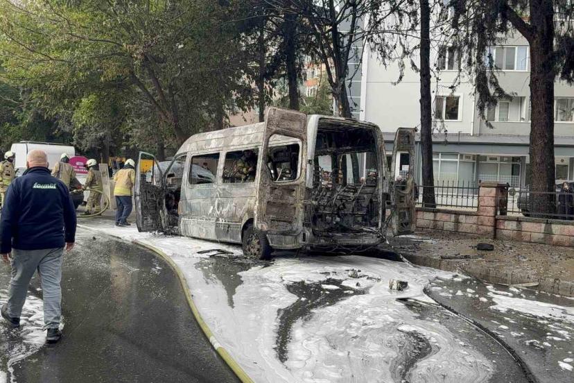 İstanbul Esenyurt’da park halindeki bir minibüs henüz bilinmeyen bir nedenle alev aldı.