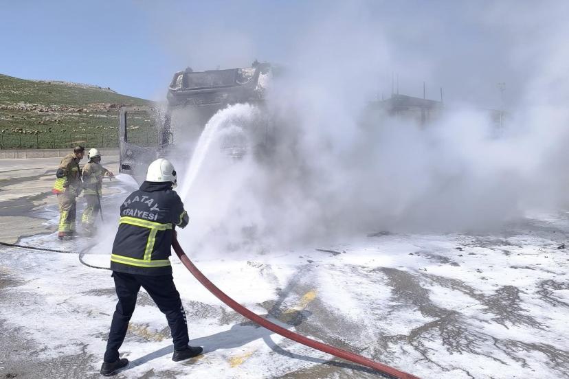 Yangın, Reyhanlı ilçesinde bulunan Cilvegözü Sınır Kapısı’nda yaşandı. Park halinde bekleyen tır, bilinmeyen bir nedenle yanmaya başladı. Kısa sürede yangının büyümesiyle tır, alev topuna döndü. Alevler içinde kalan tırı gören vatandaşlar durumu 112 Acil Çağrı Merkezi’ne bildirilmesi üzerine olay yerine itfaiye ekipleri sevk edildi. Kısa sürede bölgeye intikal eden itfaiye ekipleri, yangına müdahale ederek söndürdü. Alevler içinde yanan tır, kullanılmaz hale geldi.
