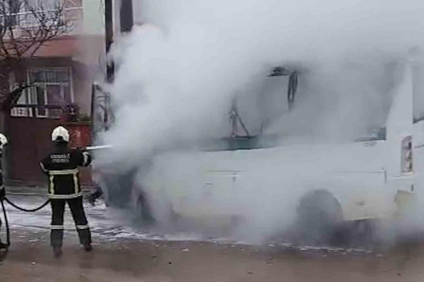 112 Acil Çağrı Merkezi’ne yapılan ihbar üzerine olay yerine itfaiye ve polis ekipleri sevk edildi. İtfaiye ekiplerinin müdahalesiyle yangın kısa sürede kontrol altına alınarak söndürüldü. Yangının ardından araçta soğutma çalışması yapıldı. Büyük çapta maddi hasar meydana gelen minibüs kullanılmaz hale geldi.