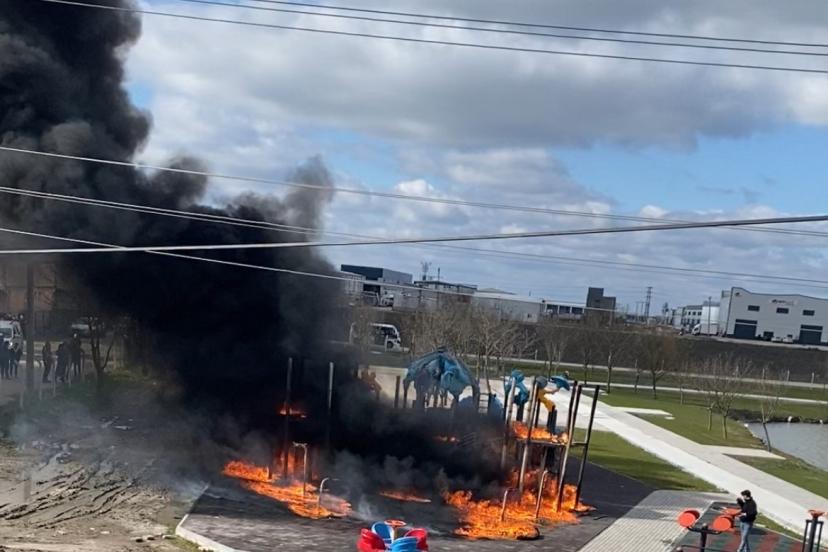 Tekirdağ’ın Ergene ilçesinde çocukların yaktığı ateş nedeniyle parktaki oyun grupları alev alev yandı.