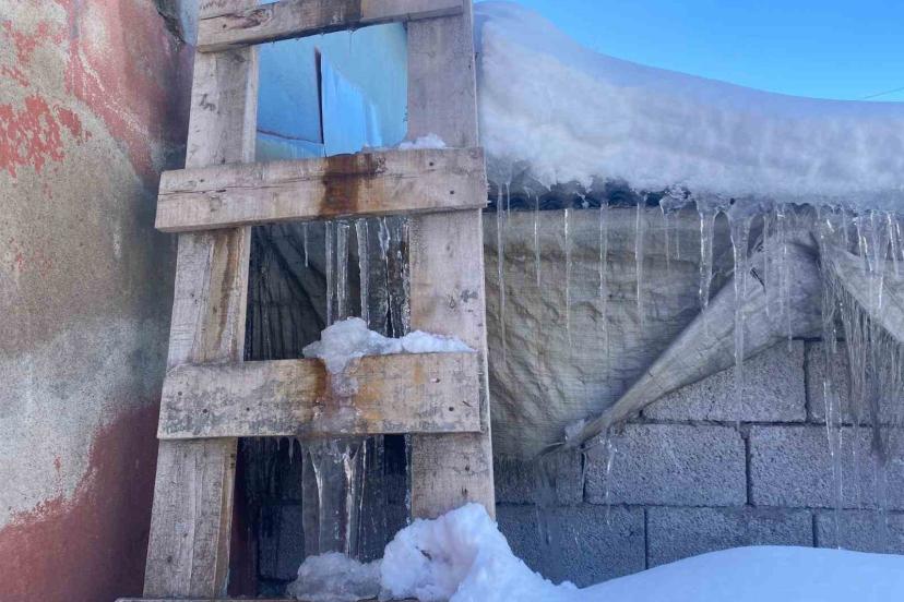 Ağrı’nın Patnos ilçesinde etkili olan kar yağışının ardından don meydana geldi, çatılarda buz sarkıtları oluştu.