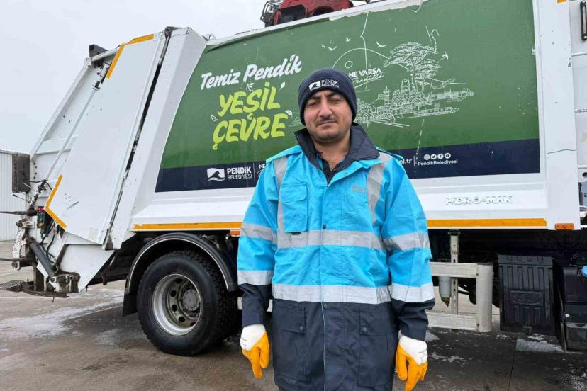 Pendik Belediyesi’nde temizlik görevlisi olan Bilgin Kaplan, çöpleri topladığı sırada bulduğu bağlamayı kamyon kasasında çalmaya çalıştı.