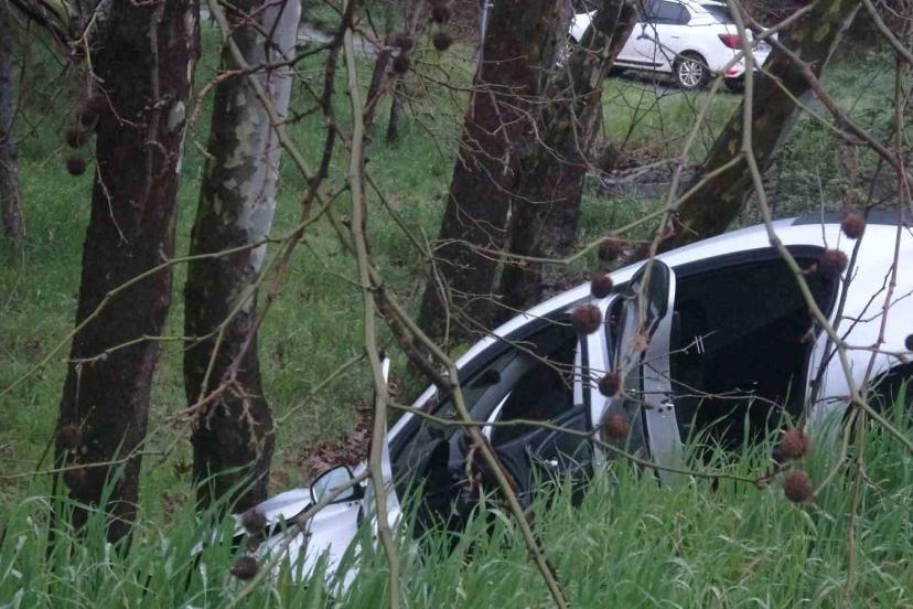 Pendik Güzelyalı Mahallesi’nde, E-5 karayolundan yan yola bağlanmak isteyen sürücü virajı alamayarak ağaçlık alana girdi.