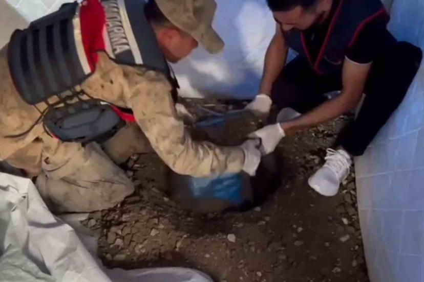 Hatay’da içerisinde 12 kilo 500 gram uyuşturucu bulunan kovayı, deprem çadırının içerisinde toprağa gömen M.
