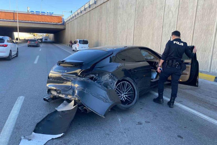 Porsche otomobil önce bir araca sonra alt geçit duvarına çarptı: 1 yaralı