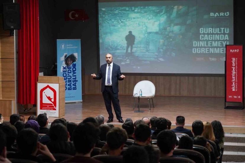 Bartın Üniversitesi (BARÜ) Bilim İletişimi Ofisi tarafından düzenlenen Bilim Kafe buluşmaları devam ediyor. Bu doğrultuda BARÜ Rektörü Prof. Dr. Ahmet Akkaya, Bartın Şehit Mustafa Yaman Anadolu İmam Hatip Lisesinde gençlerle bir araya geldi. "Gürültü Çağında Dinlemeyi Öğrenmek" başlıklı etkinlikte, etkili dinleme becerisinin günlük hayattaki rolü vurgulandı.