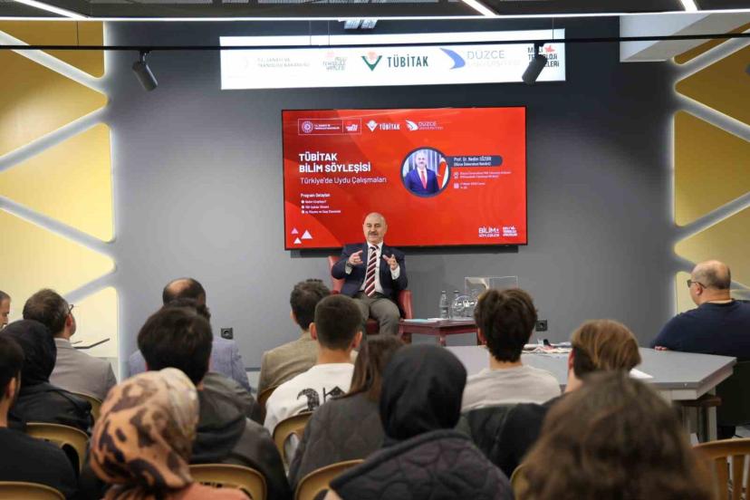 İlk TÜBİTAK Bilim Söyleşisi’nde öğrencilerle bir arada olmaktan duyduğu memnuniyeti dile getiren Nedim Sözbir, 30 milyon TL bütçeli Düzce Üniversitesi Milli Teknoloji Atölyesi’nin çok güzel imkanlar sunduğunu belirterek sözlerine başladı.