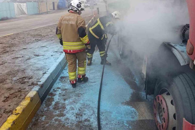 Hatay’da tırın motor kısmında çıkan yangın itfaiye ekipleri tarafından büyümeden söndürüldü.