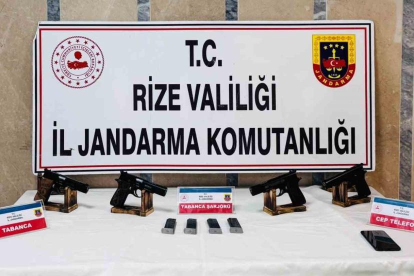 Rize İl Jandarma Komutanlığı ekiplerince "6136 Sayılı Kanuna Muhalefet" suçlarına yönelik yürütülen çalışmalar kapsamında Çayeli ilçesinde operasyon düzenlendi. Önceden tespit edilen bir şahsın ikametinde ve eklentilerinde yapılan aramalarda 4 adet ruhsatsız tabanca, 4 adet tabanca şarjörü ve 1 adet cep telefonu ele geçirildi. Şüpheli şahıs, Rize Cumhuriyet Başsavcılığı talimatıyla gözaltına alınarak hakkında adli işlemler başlatıldı.