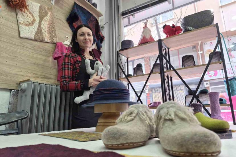 Rusya’da öğrendiği keçe ustalığını Eskişehir’de sürdürerek ayakkabı ve terlik gibi ürünler üreten Natalya Yiğit, ürünlerin ol...