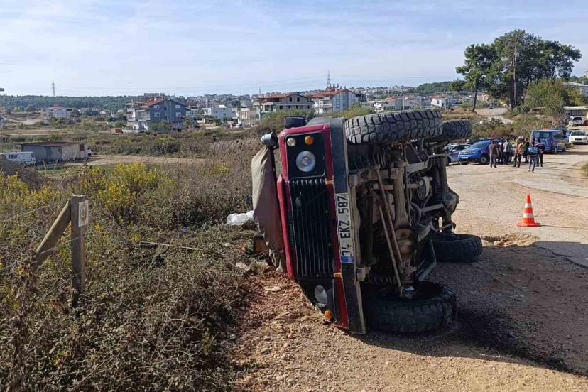Antalya’nın Manavgat ilçesinde 2 safari aracının çarpışması ve araçlardan bir tanesinin devrilmesi sonucu meydana gelen trafi...