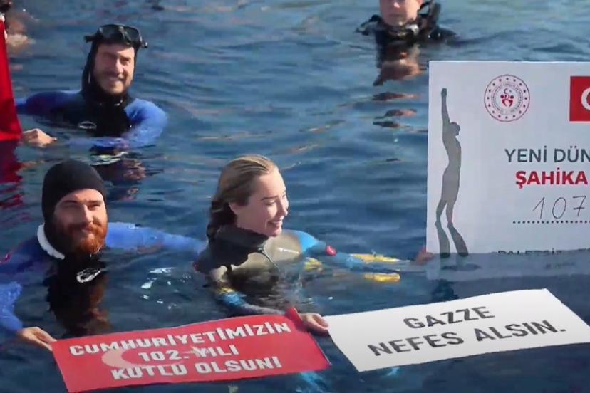 Şahika, rekor sonrası ’Gazze nefes alsın’ yazılı dövizle birlikte mutluluğunu paylaşarak, "10 sene önce yaptığımız dalışla da bu tepkimi dile getirmiştim. Gazze’deki sürecin takipçisiyim. Bugün çok şükür bir barış sürecine girildiğini görüyoruz. Bu süreç kalıcı bir barış getirene kadar dalışlarımla Gazze’ye nefes olmaya devam edeceğim. Dilerim ki Gazze nefes alsın, karanlıklar aydınlığa çıksın. Biz sporla, doğayla ve umutla yaşatmaya devam edeceğiz" ifadelerini kullandı.