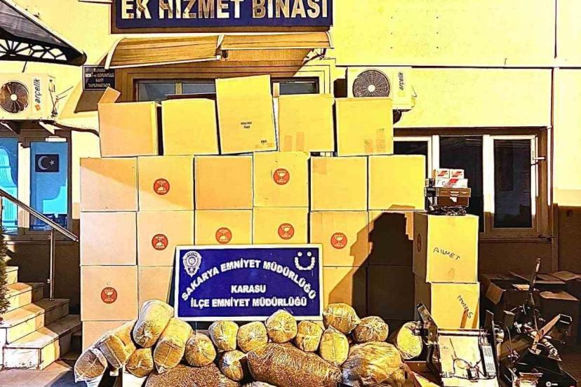 Sakarya İl Emniyet Müdürlüğü, sorumluluk bölgesinde kaçakçılığa geçit vermiyor. Bu çerçevede Karasu ve Adapazarı ilçelerinde teknik takip neticesinde belirlenen adreslere operasyon düzenlendi. Yapılan aramalarda, 670 kilogram açık tütün, 425 bin 800 adet boş, 57 bin 500 adet dolu makaron, kaçak tütün üretiminde kullanılan 1 adet tam otomatik tütün sarma makinesi, 1 adet elektronik sigara sarma makinesi, 3 adet tütün kıyım makinesi, 7 adet sarma makinesi aparatı ve 1 adet hassas terazi ele geçirildi. Çalışmalar çerçevesinde F.S. (44) ve A.K. (45) isimli şahıslar gözaltına alındı.
