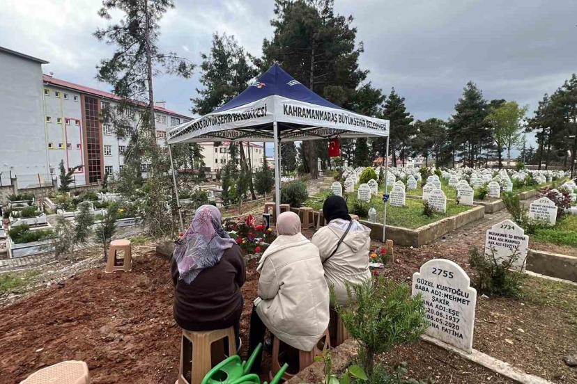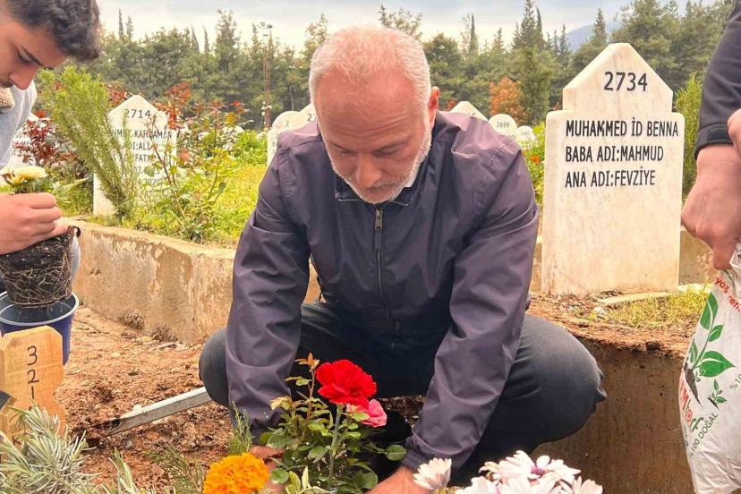 Kahramanmaraş’taki okul saldırısında hayatını kaybederek Şeyh Adil Mezarlığı’nda yan yana defnedilen çocukların mezarına yakınlarının ziyaretleri sürüyor. Saldırıda hayatını kaybeden Kerem Erdem Güngör’ün eniştesi Durmuş Koca ve yakınları mezar başında dua edip, mezara çiçekler dikti.