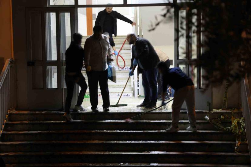 Kahramanmaraş’ta 9 kişinin öldüğü, 13 kişinin de yaralandığı okulda görevliler temizlik çalışması başlattı.