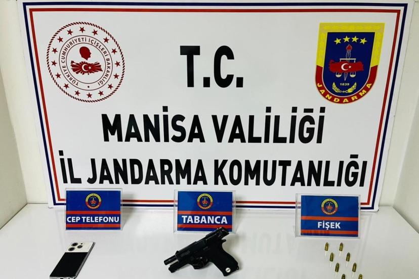 Manisa’nın Salihli ilçesinde jandarma ekiplerinin durumundan şüphelenerek durdurduğu bir kişinin üzerinden ruhsatsız tabanca ve mermi çıktı.