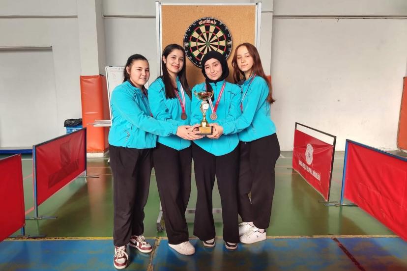 Manisa’nın Salihli ilçesindeki Şahin Şen Anadolu Kız İmam Hatip Lisesi Dart Takımı, okul sporları kapsamında düzenlenen il mü...