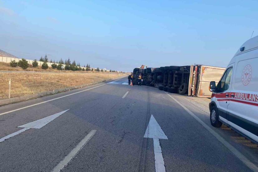 Afyonkarahisar’da kontrolden çıkan saman yüklü tır yol ortasına devrilirken kazada şans eseri ölen ya da yaralanan olmadı.