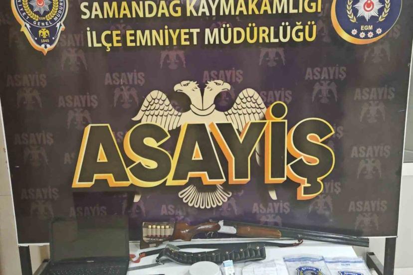 Emniyet Müdürlüğü görevlilerince; hakkında tehdit, hakaret, silahla kişi hürriyetinden yoksun kılma, uyuşturucu madde imal ve ticareti suçları kapsamında Cumhuriyet Savcılığınca adli tahkikat başlatılan U.B. adlı şahsın Samandağ’da bulunan ikametlerinde ve aracında arama yapıldı. Yapılan aramalarda;1 adet ruhsatsız tabanca, 8 adet fişek, 1 adet ruhsatsız pompalı tüfek, 28 adet dolu kartuş, 1 adet hassas terazi, 9 gram esrar maddesi, 1 adet suça konu olabileceği değerlendirilen laptop ele geçirildi. Adli makamlara sevk edilen şahıs tutuklanarak ceza evine teslim edildi.