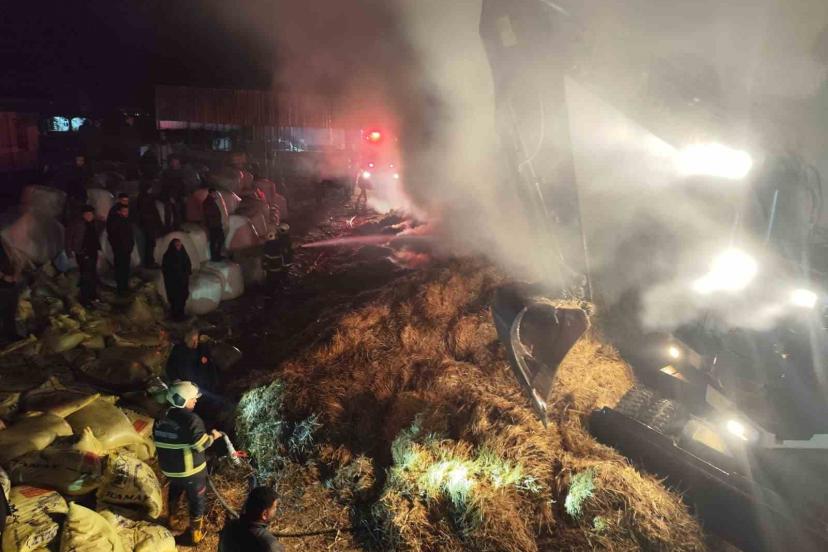 Samanlıkta çıkan yangın bitişikteki ağıla sıçramadan söndürüldü