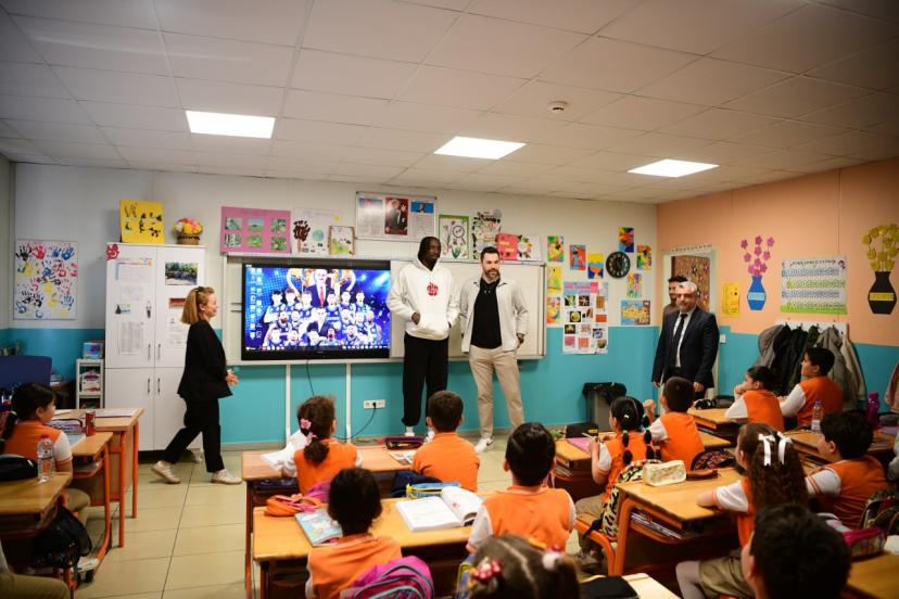 Öğrencilere imza veren Hakan Yapar ve Nysier Brooks, okulun bahçesinde de minik öğrencilerle basketbol oynamayı da ihmal etmedi. Kendilerini heyecanla bekleyen çocuklarla fotoğraf çekilen sporcular, öğrencilere takımın imzalı formasını hediye etti. Fuat Sezgin İlkokulu öğrencileri de günün anısına Yapar ve Brooks’a çiçek takdim etti.