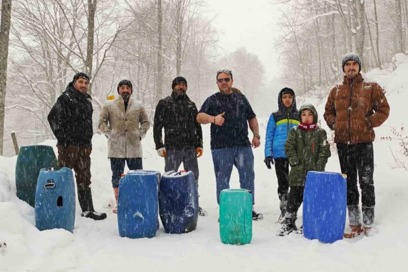 Samsun’da kar eğlencesi: Vatandaşlar bidonlarla karın keyfini çıkardı