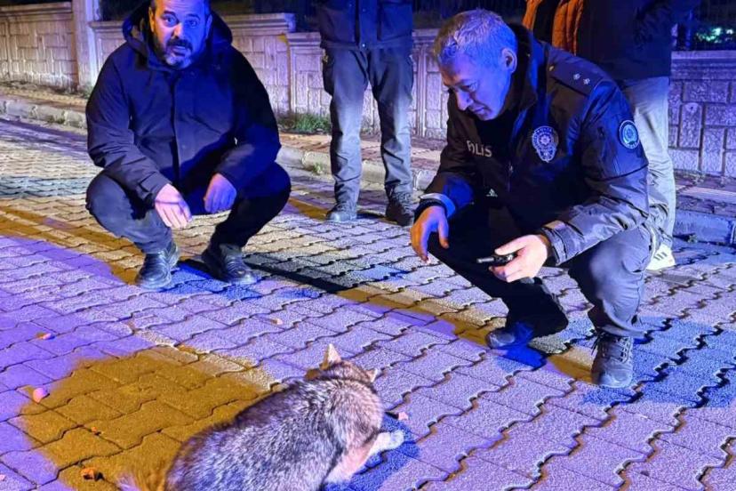 Samsun’da şehre inen çakala polis ekiplerinden şefkat eli