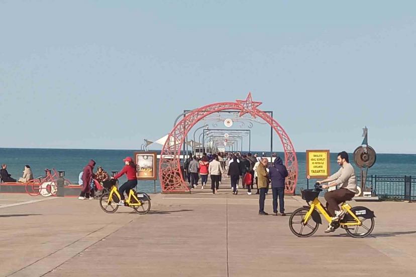 Kentte gün boyunca etkisini sürdüren yalancı bahar havası, özellikle Atakum sahilinde yoğunluğa neden oldu. Kimi vatandaşlar Adnan Menderes Bulvarı sahil kenarında yürüyüş yapmayı tercih ederken kimileri ise bisikletleriyle tur attı. En çok tercih edilen yerlerden birisi de Çobanlı İskelesi oldu. İskelede Karadeniz manzarası eşliğinde vakit geçiren vatandaşlar, güneşli havanın tadını çıkardı.