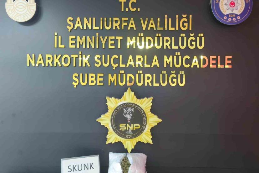 Şanlıurfa İl Emniyet Müdürlüğü ekipleri tarafından narkotik suçlarla mücadeleye yönelik çalışma başlatıldı. Çalışmalar kapsamında gerçekleştirilen operasyonla tek parça halinde 1 kilo 200 gram skunk maddesi ele geçirildi. Olaya ilişkin 1 şüpheli şahıs uyuşturucu madde ticareti yapmak suçundan gözaltına alındı. Gözaltına alınan şahıs çıkarıldığı adli makamlarca tutuklanarak cezaevine gönderildi.