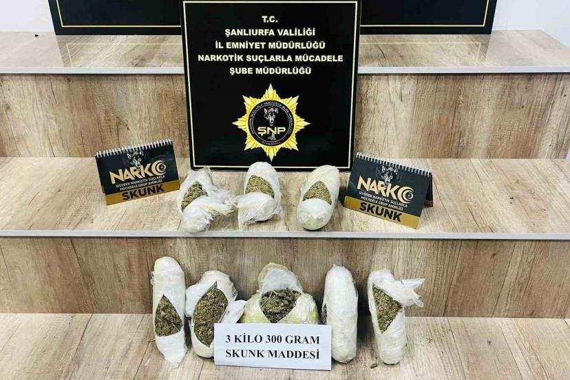 Şanlıurfa’da narkotik ekiplerince düzenlenen operasyonda 3 kilo 300 gram skunk ele geçirildi, 1 şüpheli tutuklandı.